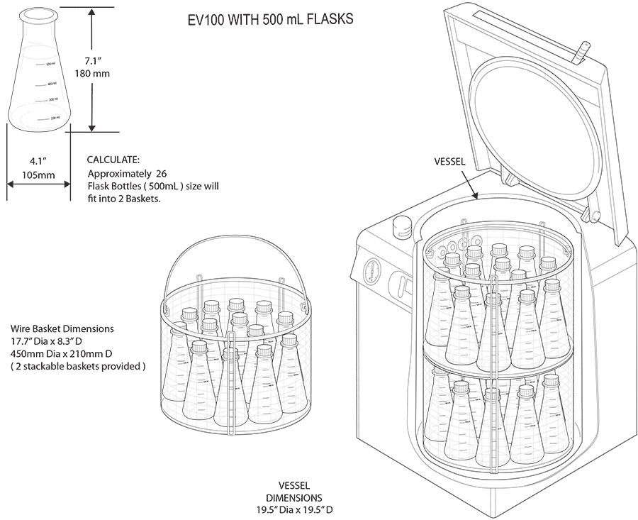 Top-loading autoclaves like the 100L are the standard for lab work in Europe, and the #1 top-sellers for Priorclave UK worldwide because they are among the most space-efficient sterilizers available. They easily accommodate the tallest flasks, fermentors, and bioreactors, but cost one-third as much as a comparable front-loading autoclave—making them popular with life-science research labs and academic institutions. They’re also excellent for waste processing—after all, every trash can in your lab is a “top loader.”