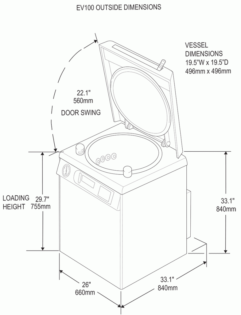 | Working Dimensions: | 19.5” (496mm) diameter x 19.5” (496mm) deep |