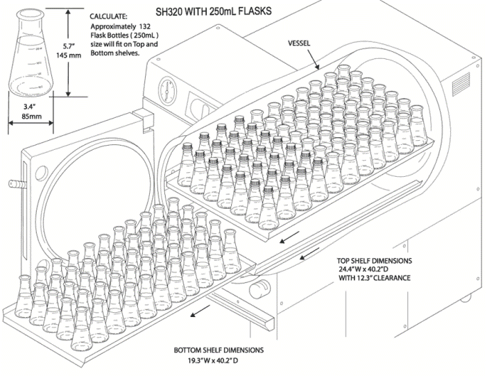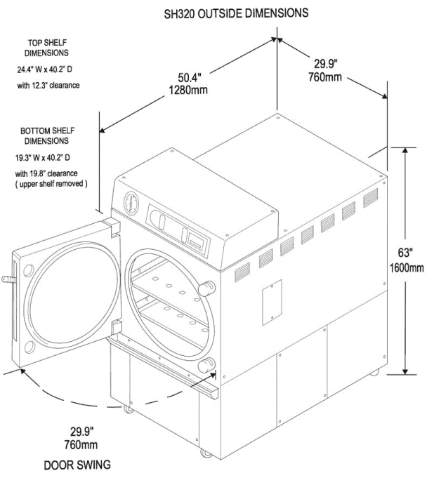 Our highest throughput front-loading autoclave. The 320L is five inches wider than the 200L, with shorter total cycle times, despite being 60% larger. Our cylindrical-chamber 320L directly competes with any 20×20 rectangular autoclave on the market, offering exceptional reliability and unparalleled energy, water, and lifetime cost savings.