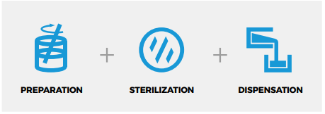 • Preparation, sterilization, cooling and dispensing all integrated into the same equipment