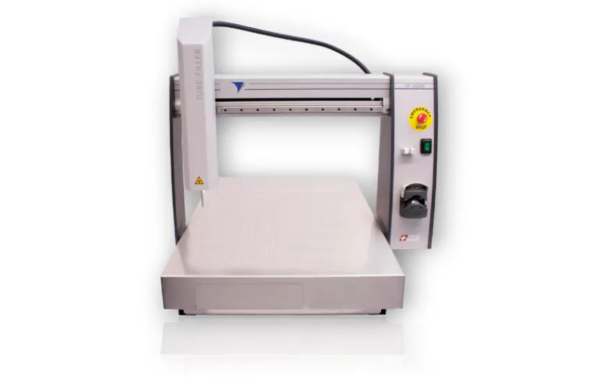 The TF-3000 tube filling machine comes as a system with an integrated built-in peristaltic pump that is controlled by the software.