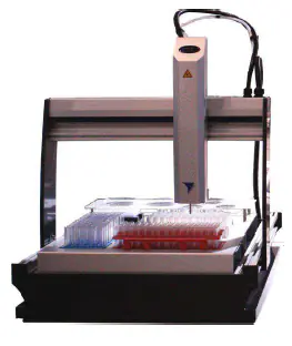 The LED guided arm will start moving in precision from tube-to-tube, filling up the desired volume, thereby freeing the lab technician from this tedious time-consuming task. Bottle and test tube filler features include: